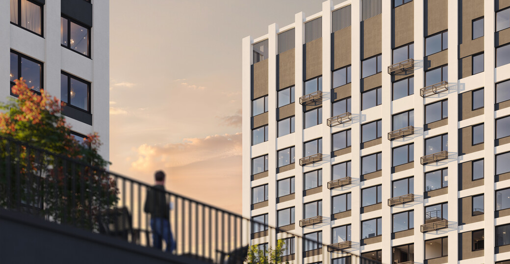 Композиция и архитектурное решение делают «Мармакс. Проспект Ленина» новой доминантой района, выделяя его среди объектов в локации. Переменная высотность секций — 9/12/23/25 этажей — и чередование материалов фасада придают объекту динамику и воздушность.